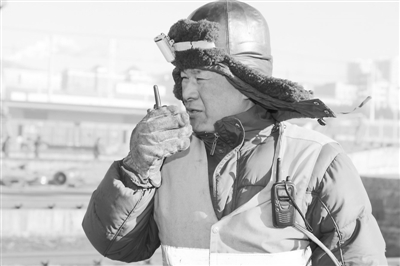 图为近日,该站国际联运换装场四场13道值班员王义正在滚滚煤烟中指挥进口煤炭换装作业。 原勇 摄