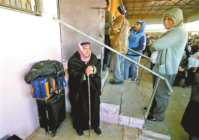 1月29日,在加沙地带与埃及接壤的拉法口岸,人们等待通关进入埃及。