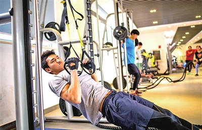 1月30日,国家游泳队队员徐嘉余在进行体能训练。