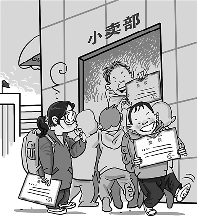 据《扬子晚报》报道,近日,江苏涟水县一家小卖部向小学生出售奖状,2元一张,并提供代写服务,吸引众多学生争相购买。小卖部店主称:“买回去可以忽悠家长、要压岁钱,现在不就是玩虚的吗?反正家长什么也都不晓得。”随后,店主被警方传唤调查,因其行为够不上犯罪,警方对其进行了批评教育。