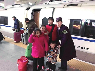 近日,G7372次到达无锡站后,一家5口回阜阳老家过年。没想到爸爸刚把两个小孩送上火车,返回来背行李和接另外一个孩子和妈妈时,车门已关列车启动。车上的两个孩子急得马上哭了。列车长赵静一边将小朋友带到餐车坐下,联系上了孩子的父亲,让孩子父母放心;一边与路站调度联系。到了午饭时间,细心的列车长还给孩子们送上了盒饭,耐心地喂孩子吃饭。下午1点左右,孩子们和妈妈在合肥南站汇合了。