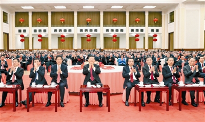 党和国家领导人李克强、栗战书、汪洋、王沪宁、赵乐际、韩正、王岐山等出席团拜会,李克强主持。
