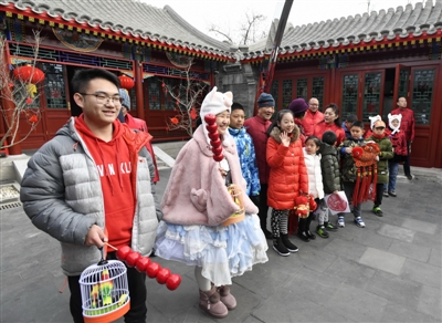 当日,北京市东城区东四街道第11届“春燕归来落东四 金猪纳福报春来”主题“报春”活动在东四胡同博物馆举行。社区居民和中外游人一起参加胡同里的“报春”活动,为即将到来的春节增添喜庆气氛。 新华社记者 李欣 摄