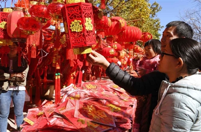 2月3日,人们在仁德街道年货市场选购灯笼。