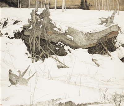 雪为万物覆上一层“白”,雪的白,并非仅仅是白,下雪或者雪白给人的空寒之感,带来的是对人的心灵和生命的净化。雪白之感,传达出无尽的物外之物,象外之象,味外之味。总体来说,地域性因素是一个地区的自然环境、生活条件、民风民俗、历史传承等的综合体。它对于生活在这个地区的艺术家的个性风格等有着深刻影响。就此而言,地域性因素对于风景画创作有着极其重要的影响。在多元文化语境下的当代社会,艺术家围绕地域性特点来进行构思、创作,这将会是一件非常有意义的事。