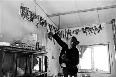在位于西藏米林县派镇的雅江堰塞湖受灾群众安置点,直白村村民在活动板房内整理风干肉(1月31日摄)。自2018年10月17日和29日发生灾害以来,在党和政府的救援以及社会各界的关心帮助下,受灾群众及时转移安置,生产生活逐渐恢复。在安置点,村民欢度春节和藏历新年。 新华社记者 田金文 摄