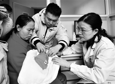 2月6日,山西省儿童医院的医生(右一)在为患儿诊治。