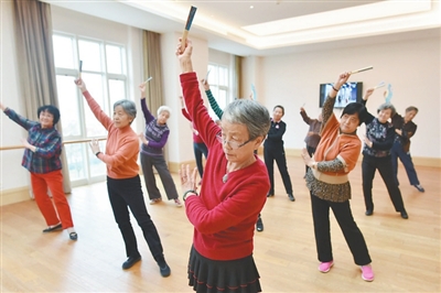 2018年12月5日,一群老年人在养老社区上舞蹈课。 视觉中国 供图