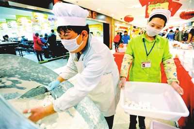 2月11日,辽宁沈阳,元宵佳节临近,市场上高档元宵受冷遇。包装精美、几百元甚至上千元一盒的元宵滞销,传统手工元宵受欢迎。      东方IC 供图