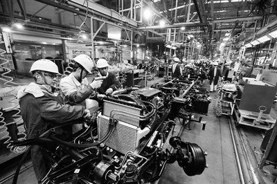 2月14日,工人在湖北襄阳一轻型商用车公司的生产线上忙碌。 春节假期过后,各地工业企业抓紧开始生产,车间一派繁忙景象。 新华社发