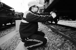 春运以来,新丰镇车站把提高到达车的排风作业质量做为保证驼峰解体安全的首要任务,严格落实勾勾检查,列列提效措施,确保了编组站的安全畅通。图为该站职工在对车辆进行排风作业。(白天明 摄)