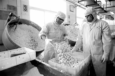 元宵节临近,北京一家老字号食品生产企业加紧生产元宵,供应节日市场。