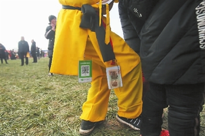 一位孙悟空的装扮者借机与人合影,每次收费20元,可进行微信支付。