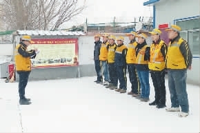 三六九,雪纷飞。绥德工务段风雪无阻检修铁路线桥设备,确保春运期间旅客列车出行安全。图为该段绥德桥隧车间绥德桥隧工区正在进行班前点名分工,为春运旅客出行安全站好岗。(张德林 摄)