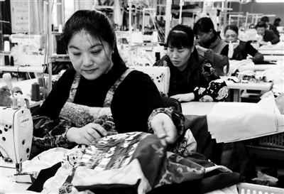 2月20日,莆田一家电子商务有限公司的工人在生产外销个性化定制服装。