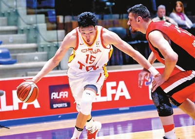 中国队球员周琦(左)在比赛中带球突破。新华社发(比拉尔·贾维希 摄)