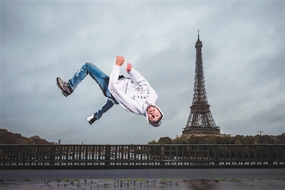 霹雳舞运动员在埃菲尔铁塔前跳舞。 视觉中国 供图