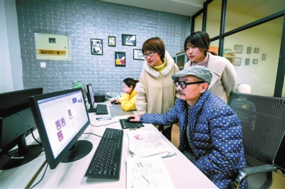 2月27日,织里镇童装办副主任周青青(左一)与同事一起来到童装设计中心的一家设计工作室内,与工作室负责人沟通企业运行情况,了解企业碰到的具体问题。