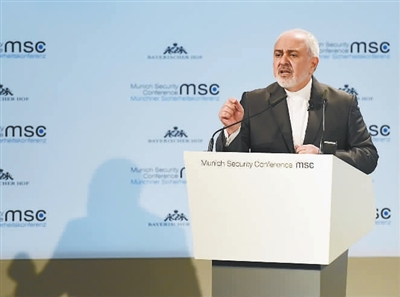 这是2月17日,伊朗外交部长扎里夫在德国慕尼黑安全会议上发言的资料照片。 新华社记者 逯阳 摄