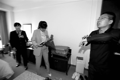 3月4日下午,在福建代表团驻地,厦门港务控股集团公司工会副主席冯鸿昌代表(右)和几位基层代表告别。