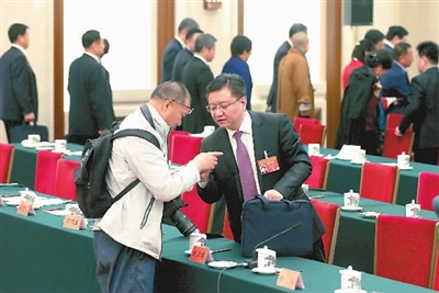 3月7日12时,河北省张家口市市长武卫东代表在会议结束后给记者留联系方式。