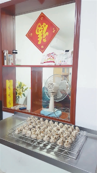 段英燕与志愿者一起包的烧麦。本报记者 罗筱晓 摄