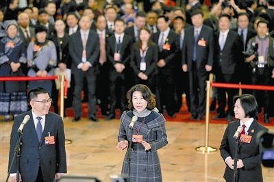 3月8日下午,十三届全国人大二次会议第二场“代表通道”开启,有9位代表接受了集中采访。本报记者 杨登峰 摄