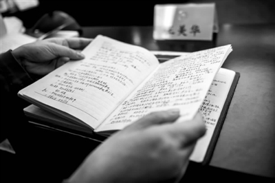 ②王美华委员正在翻阅她的两会笔记,笔记上密密麻麻地记录了她的履职感受和发言提要。