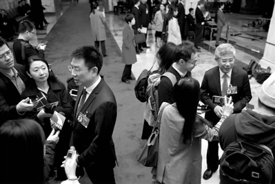 3月13日,全国政协委员、武汉高德红外公司董事长黄立和全国政协委员、清华大学经济管理学院院长白重恩走下“委员通道”后继续接受记者采访。