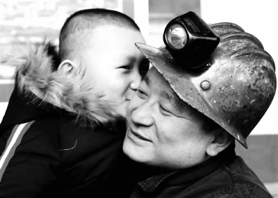 在井口大厅,该矿综采二队职工张孩正准备下井,儿子跑过去紧紧抱住爸爸说起了悄悄话:“爸爸,我们等你回家吃饺子!” 赵军 摄