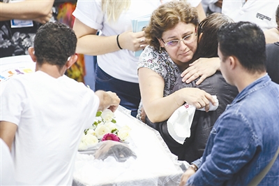 3月14日,在巴西圣保罗州苏扎诺市,人们参加集体葬礼悼念校园枪击案的遇难者。据巴西媒体报道,圣保罗州苏扎诺市劳尔·布拉西尔州立中学13日上午发生一起枪击案,造成包括枪手在内的10人死亡,另有至少17人受伤。