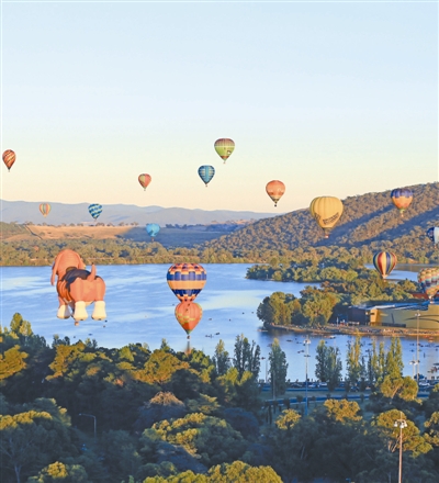 3月12日,在澳大利亚堪培拉,热气球飞过格里芬湖上空。 堪培拉热气球节于3月9日至17日举行。热气球节创办于1986年,是这个城市每年最重要的活动之一。今年的热气球节共有33个气球。 新华社发(潘翔越摄)