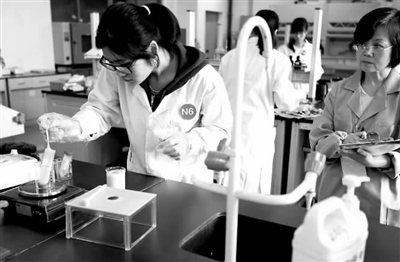 3月16日,2018~2019年度广东省职业院校学生专业技能大赛(园林景观设计、农产品质量安全检测、鸡新城疫水平测定赛项)在广东科贸职业学院举行。图为农产品质量安全检测比赛中,选手们专注比赛。当日,来自全省的46所院校、75支参赛队,共400多名学生参加比赛。