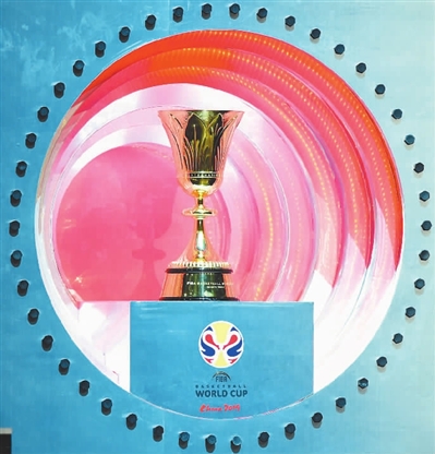 抽签仪式现场展出的篮球世界杯冠军奖杯。 新华社记者 刘大伟 摄