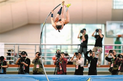 3月19日,浙江队选手李玲在女子撑杆跳高决赛中。