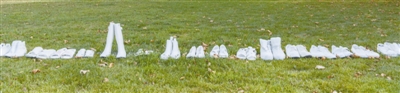 3月20日,新西兰克赖斯特彻奇一座教堂外摆放着50双刷成白色的鞋子,象征着50名在15日恐袭案中的遇难者。