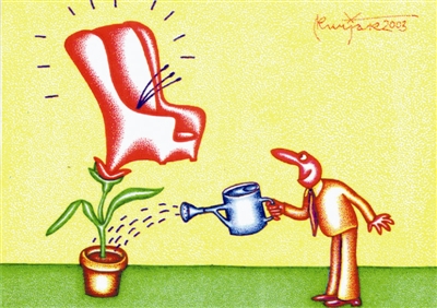 画展陈列着糕点、瓜果等静物作品。呼之欲出的美味让饥不择食的参观者拿去果腹,画框顿时空空,尴尬中,人们愕然。【伊朗】 阿 敏