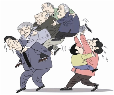 漫画《重负》,用独有的艺术语言,在这一问题前面置放了一枚放大镜。或许这件作品并未提供养老问题的具体解决方案,然而,漫画家一贯秉承的创新思维提醒我们,在传统的家庭养老出现困难的时候,我们还有社会,创新型社会不会畏惧困难。