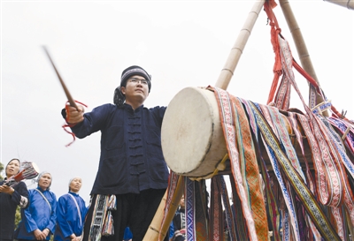 3月19日,在广西富川瑶族自治县葛坡镇青山脚村,90后瑶族青年徐维生在排练节目。 徐维生从小受到瑶族传统文化熏陶,喜欢瑶族纺织技艺、瑶族歌谣传唱和瑶族乐器制作等。他在2016年组织成立一个瑶族古文化艺术团,一心传承古老的民族文化。 新华社 陆波岸 摄