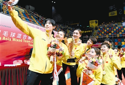 当日,在香港伊利沙伯体育馆举行的2019年亚洲羽毛球混合团体锦标赛决赛中,中国队以3比2战胜日本队,夺得冠军。