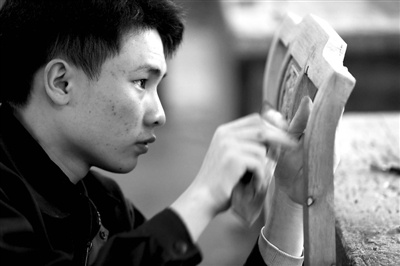 3月26日,安徽省休宁徽匠学校木工班学生在制作木椅。近年来,该校木工班通过校企合作,培养了不少优秀的木工从业人员,既传承了徽州传统木工技艺,又将徽州文化的智慧融入生活。 新华社记者 刘军喜 摄