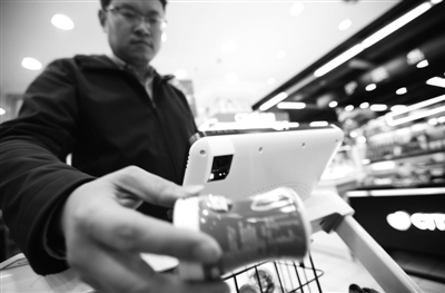 3月25日,陕西省西安市雁塔区一家大型超市里,出现了一种“黑科技”的购物车。根据提示,只要滑动显示屏上的购物系统,便可一边购物一边付账,不用排队等候结账。在显示屏的下方,还有一根数据线,数据线的一端还有3个不同的端口,可以给手机充电。付款时只需将付款码对着显示屏后面的镜头扫一扫,5秒钟就可以成功结账。东方IC 供图
