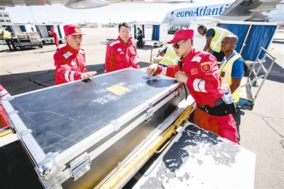 3月25日,在莫桑比克贝拉市,中国救援队队员在机场检查刚抵达的物资。 新华社记者 张宇 摄