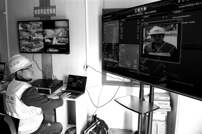 近日,一套“智慧工地”管理系统在中建三局承建的杭州“浙江智慧之门”项目施工现场投入应用,包括工人实名制通道、物联网数控中心、“工地大脑”等智慧化施工管理技术。图为3月26日,工作人员在察看“工地大脑”的实时数据。新华社记者 黄宗治 摄