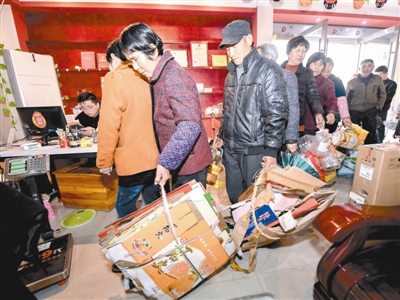 3月27日,北汤村村民把可回收垃圾送到“可回收垃圾兑换超市”换取积分。 从2018年开始,浙江省长兴县林城镇北汤村实行垃圾分类积分兑换管理制度,开设“可回收垃圾兑换超市”,村民可使用积分在农村淘宝上购买商品。 新华社记者 徐昱 摄