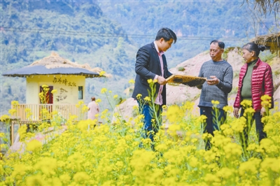 3月25日,重庆市綦江区中峰镇中峰村,邹晋耐心地在为请教的村民讲解养蜂难题。 31岁的邹晋是中峰村村民,养殖蜜蜂12年,是当地颇有名气的养蜂专家。自己成功后,邹晋还免费为贫困户提供技术支持。 在邹晋的帮助下,中峰镇有14户贫困户通过养蜂脱贫,其余87户贫困户每户年平均增收4000多元。