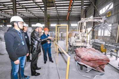 3月28日,长兴县应急管理局的工作人员在车间内对包装环节机械臂操作的防护措施进行现场查看,并提出指导意见。
