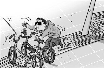 家住海口市碧湖家园小区的温逍今年刚满18岁,由于患有先天性视力残疾,他一直生活在黑暗中。他告诉记者,如果必须单独出门,他都习惯摸着墙走。因为好几次他走在盲道上,不是被停放的自行车绊倒,就是因盲道突然消失而“迷路”。“对我来说,盲道起不了什么作用。”