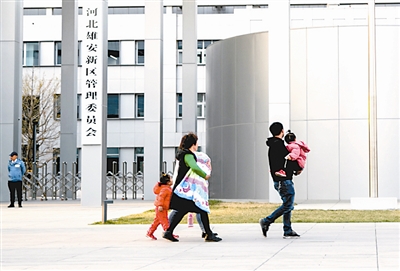 3月31日,当地居民从雄安新区管理委员会门前经过。