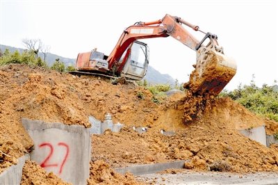 3月31日,在福州市长乐区南阳山上,工作人员对一座违建坟墓进行覆土。 3月29日,福州市委市政府部署对该市沿海部分地区毁林建造豪华活人墓问题开展整治行动。3月31日,记者在福州长乐区及福清市部分乡镇看到,整治行动正有序开展。新华社记者 姜克红 摄